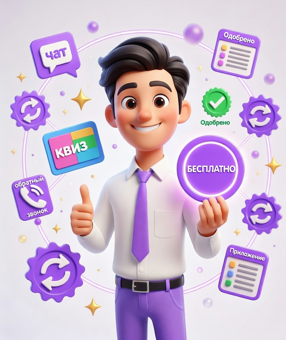 Безлимитный доступ к виджетам каталога — без ограничения срока: подключайте чат, квиз, обратный звонок и другие сценарии для своих проектов после одобрения заявки.
